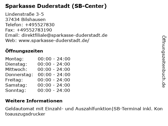 Branchen & Suchbegriffe zu Sparkasse Duderstadt (SB-Filiale):duderstadt, sb, sparkasse |