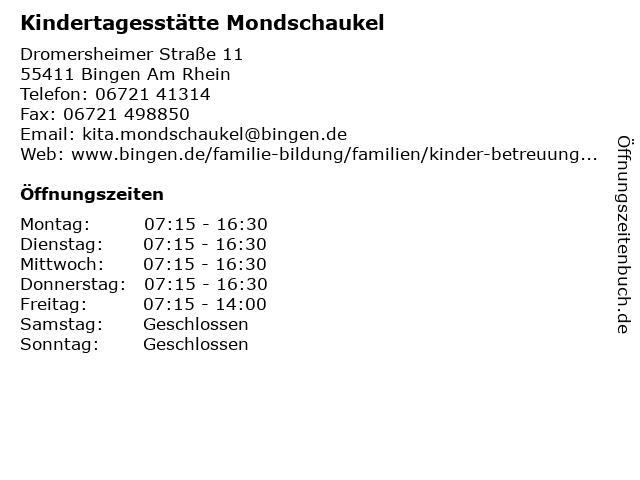 2 Katholische Kindertagesstätte Schatzkiste (Entfernung: 2,37 km) Pfarrer-Eberhard-Otto-Weg 1, 55411 Bingen 6 |