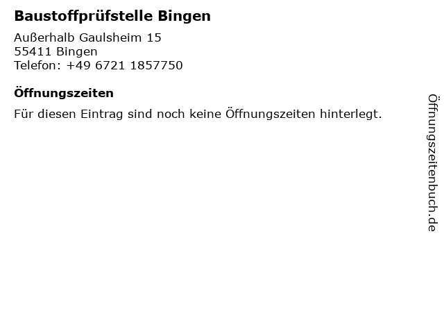 | Öffnungszeiten Baustoffprüfstelle Bingen in Bingen anzeigen | |