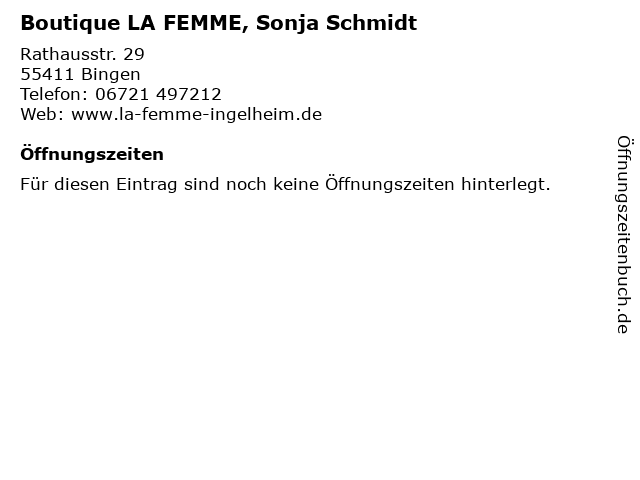 | Boutique LA FEMME, Sonja Schmidt anrufen | |