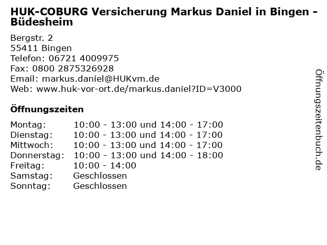 Branchen & Suchbegriffe zu HUK-COBURG Versicherung Markus Daniel in Bingen - Büdesheim:altersvorsorge, autoversicherung, berufsunfähigkeitsversicherung, büdesheim, coburg, daniel, gebäude- und hausratsversicherung, huk, kfz-versicherung (motorrad), markus, tierversicherung, versicherung, zahnmedizinische versicherung |