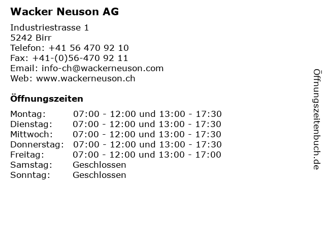 | Öffnungszeiten Wacker Neuson AG in Birr anzeigen | |