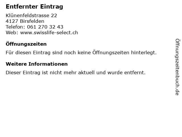 | Öffnungszeiten Entfernter Eintrag in Birsfelden anzeigen | |