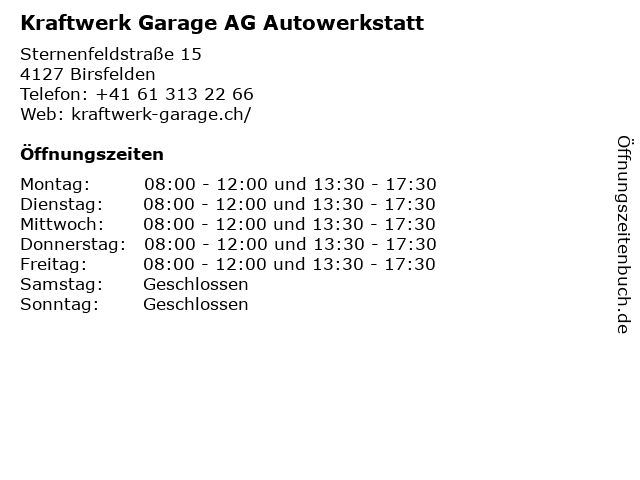 Branchen & Suchbegriffe zu Kraftwerk Garage AG Autowerkstatt:automechaniker, autowerkstatt, dienste, garage, kfz, kraftwerk |