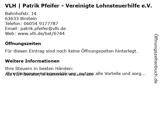 | VLH | Patrik Pfeifer - Vereinigte Lohnsteuerhilfe e.V. anrufen | |