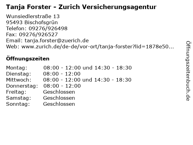 Branchen & Suchbegriffe zu Tanja Forster - Zurich Versicherungsagentur:agentur, forster, tanja, versicherung, versicherungsagentur, versicherungsvertreter, zurich |