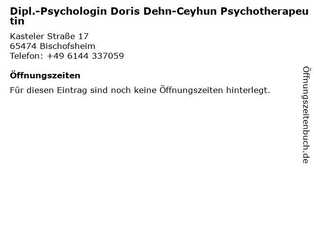 | Dipl.-Psychologin Doris Dehn-Ceyhun Psychotherapeutin anrufen | |