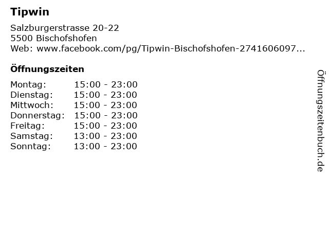 | Öffnungszeiten Tipwin in Bischofshofen anzeigen | |