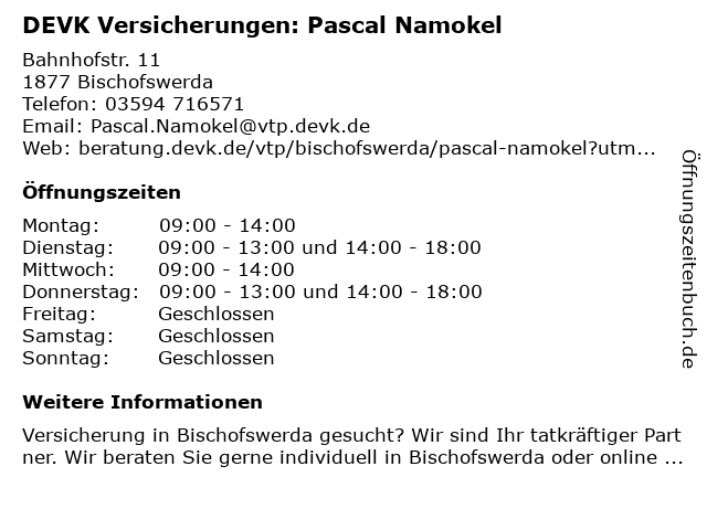Branchen & Suchbegriffe zu DEVK Versicherungen: Pascal Namokel:altersvorsorge, autoversicherung, berufsunfähigkeitsversicherung, devk, gebäude- und hausratsversicherung, gewerbeversicherung, kfz-versicherung (motorrad), lebensversicherung, mietrechtsschutzversicherung, namokel, pascal, reiseversicherungsagentur, versicherungen |