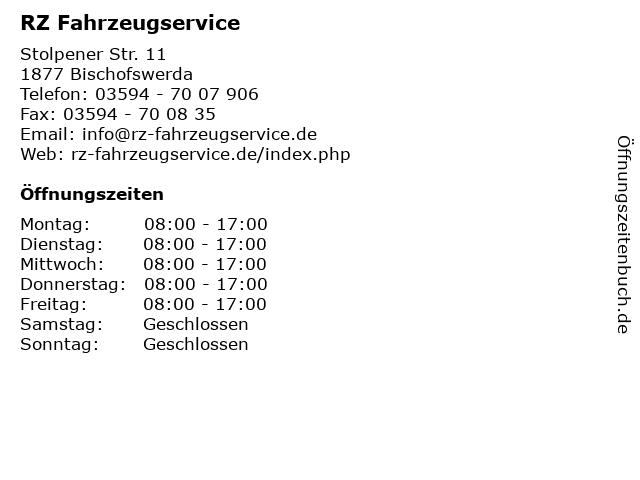 | Öffnungszeiten RZ Fahrzeugservice in Bischofswerda anzeigen | |