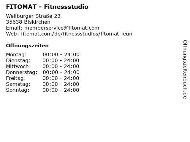 | Öffnungszeiten FITOMAT - Fitnessstudio in Biskirchen anzeigen | |