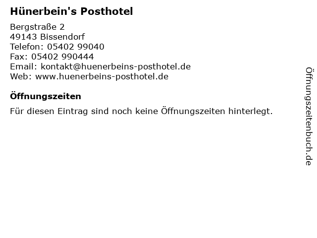 | Öffnungszeiten Hünerbein's Posthotel in Bissendorf anzeigen | |