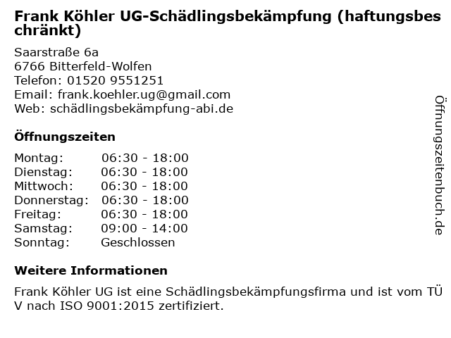 Branchen & Suchbegriffe zu Frank Köhler UG-Schädlingsbekämpfung (haftungsbeschränkt):frank, haftungsbeschränkt, köhler, schädlingsbekämpfung, ug |