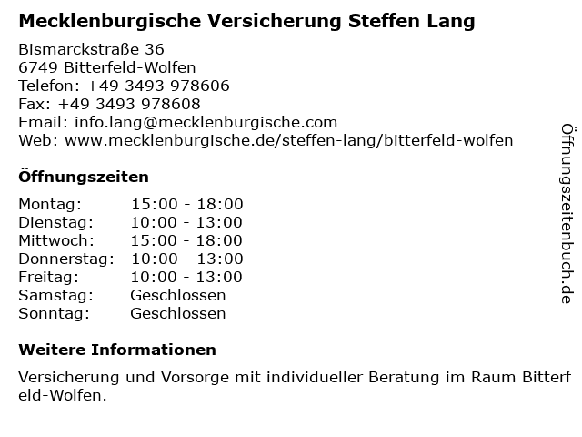 2 PerlNet a division of PerlSystem®, Steffen Perlwitz (Entfernung: 0,12 km) Bismarckstr. 29, 06749 Bitterfeld-Wolfen 3 Allianz Versicherung Steffen Wust Generalvertretung (Entfernung: 0,94 km) Mühlstraße 26, 06749 Bitterfeld-Wolfen 5 Dr.med. Steffen Schock Arzt für Urologie (Entfernung: 1,74 km) Friedrich-Ludwig-Jahn-Str. 2, 06749 Bitterfeld-Wolfen 6 Mecklenburgische Versicherung Jürgen Schünemann (Entfernung: 3,78 km) Äußere Waldstraße 32, 06803 Bitterfeld-Wolfen |
