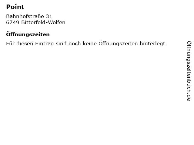 Öffnungszeiten Point in Bitterfeld-Wolfen anzeigen