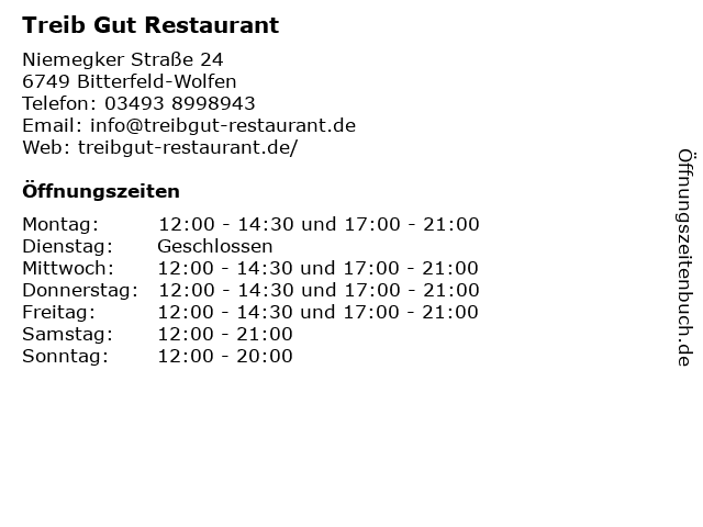 Branchen & Suchbegriffe zu Treib Gut Restaurant:essen, getränke, gut, kaffee, restaurant, treib |