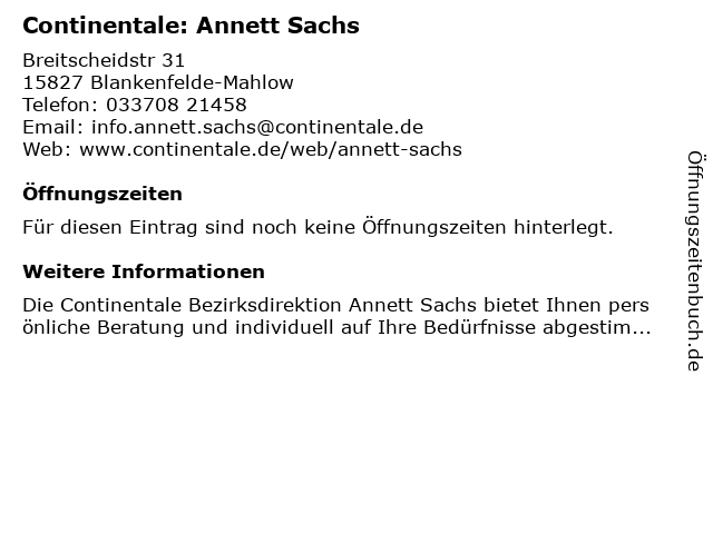 Branchen & Suchbegriffe zu Continentale: Annett Sachs:annett, continentale, sachs |