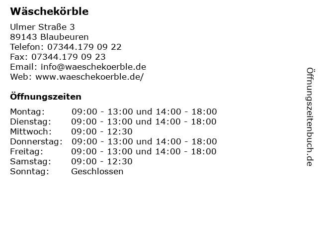 | Öffnungszeiten Wäschekörble in Blaubeuren anzeigen | |