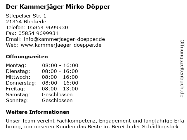 3 K. LKH Schädlingsbekämpfung & Naturschutzberatung UG (Entfernung: 24,58 km) Artlenburger Landstraße 15, 21339 Lüneburg 6 |