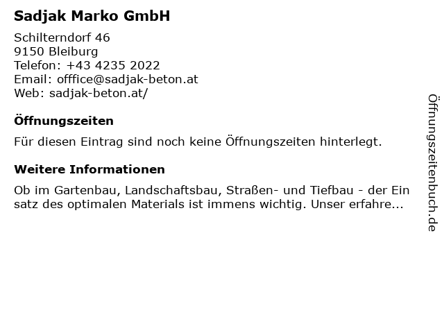 | Öffnungszeiten Sadjak Marko GmbH in Bleiburg anzeigen | |