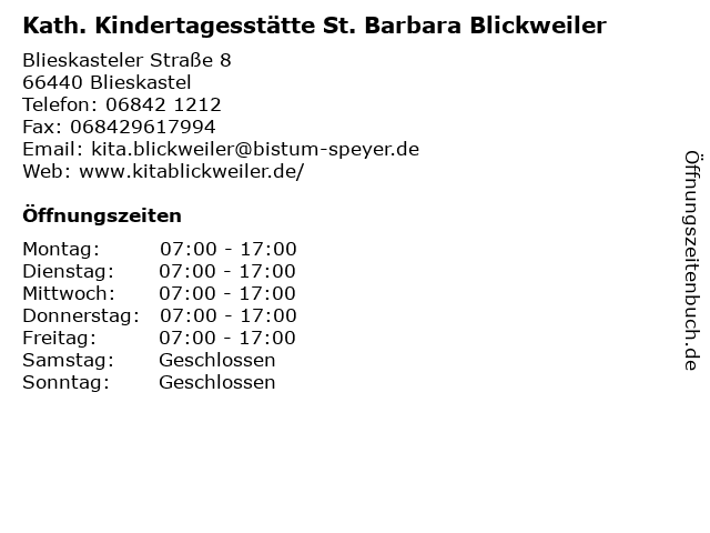 Branchen & Suchbegriffe zu Kath. Kindertagesstätte St. Barbara Blickweiler:barbara, blickweiler, familienzentrum, kath., kinderbetreuung, kindergarten, kindertagesstätte, kita |