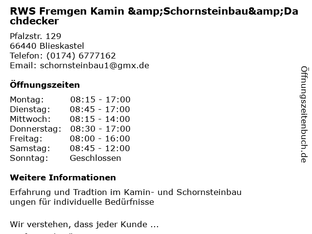 Branchen & Suchbegriffe zu RWS Fremgen Kamin &Schornsteinbau&Dachdecker:&schornsteinbau&dachdecker, feuerungsbaumeister, fremgen, kamin, kaminaufsätze, kaminbau, kaminsanierungen, montageschornsteine, ofenbau, rws, schornsteine, schornsteinreparaturen, schornsteinsanierungen |