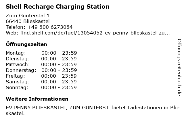 Shell Recharge Charging Station in Blieskastel: Telefonnummer, Öffnungszeiten und Adresse