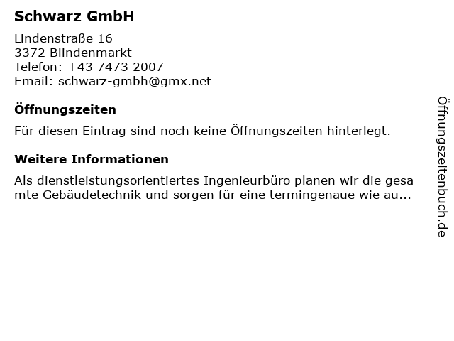 | Öffnungszeiten Schwarz GmbH in Blindenmarkt anzeigen | |
