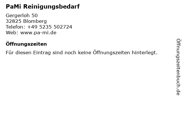 | Öffnungszeiten PaMi Reinigungsbedarf in Blomberg anzeigen | |