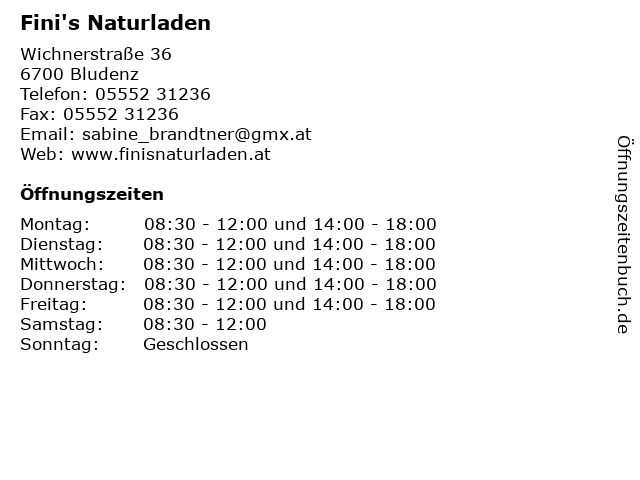 | Öffnungszeiten Fini's Naturladen in Bludenz anzeigen | |