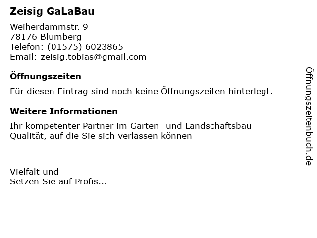 | Öffnungszeiten Zeisig GaLaBau in Blumberg anzeigen | |