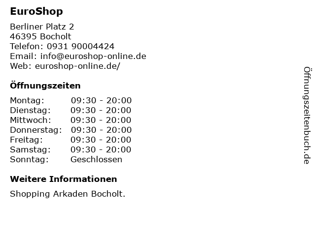 Öffnungszeiten EuroShop in Bocholt anzeigen