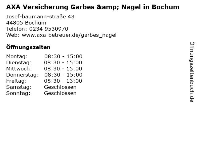 3 AXA Versicherung - Generalvertretung Tanja Bertram (Entfernung: 3,86 km) Alte Bahnhofstr. 199, 44892 Bochum 5 AXA Versicherung - Hauptvertretung Nicole Schneider (Entfernung: 5,82 km) Von-Waldthausen-Str. 208, 44628 Herne 6 |