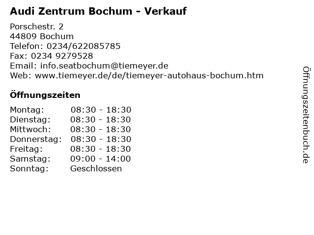 | Öffnungszeiten Audi Zentrum Bochum - Verkauf in Bochum anzeigen | |