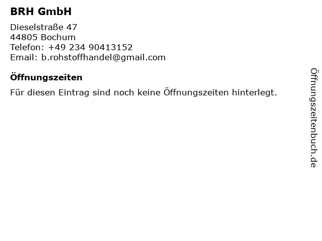 | Öffnungszeiten BRH GmbH in Bochum anzeigen | |