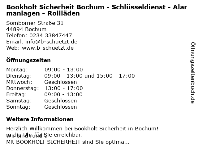 Branchen & Suchbegriffe zu Bookholt Sicherheit Bochum - Schlüsseldienst - Alarmanlagen - Rollläden:alarmanlagen, bookholt, rollläden, schlüsseldienst, sicherheit |