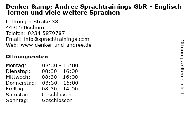 Branchen & Suchbegriffe zu Denker & Andree Sprachtrainings GbR - Englisch lernen und viele weitere Sprachen:andree, denker, englisch, gbr, lernen, sprachen, sprachtrainings, viele, weitere |
