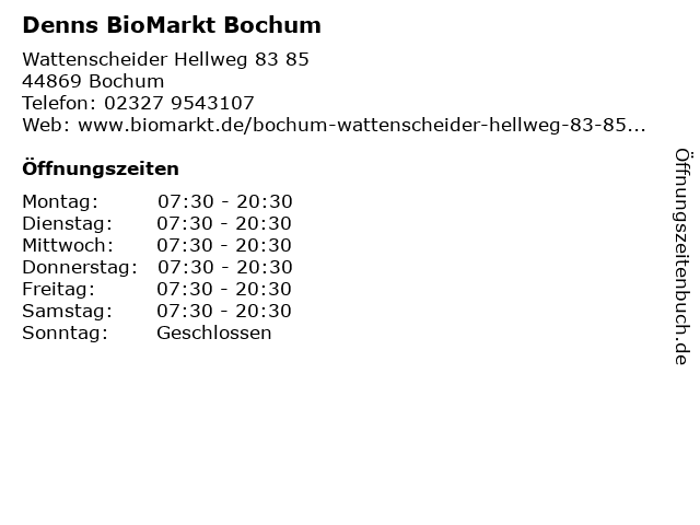 | Öffnungszeiten Denns BioMarkt Bochum in Bochum anzeigen | |