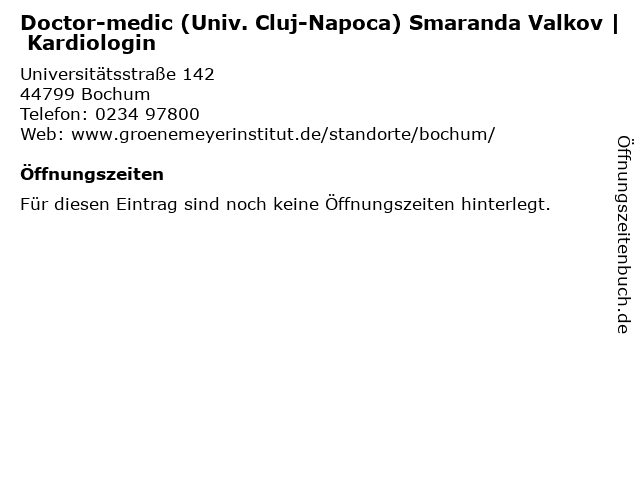 | Doctor-medic (Univ. Cluj-Napoca) Smaranda Valkov | Kardiologin anrufen | |