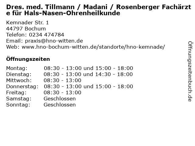 2 Dres. med. Flashar Christian und Kranzhoff Michael und Bering Klaus Hausarztzemtrum Kemnade (Entfernung: 2,48 km) Kemnader Straße 316, 44797 Bochum 3 Gemeinschaftspraxis Dres. Joachim Klose und Isabelle Hoffmann-Klose (Entfernung: 2,49 km) Gesundheitscampus 21, 44801 Bochum 5 Ulrich Kolbe Facharzt für Hals-Nasen-Ohrenkunde (Entfernung: 2,54 km) Kemnader Str. 322, 44797 Bochum 6 Campus Klinik Gynäkologie - Fachärzte für Frauenheilkunde und Geburtshilfe (Entfernung: 2,87 km) Universitätsstr. 136, 44799 Bochum |