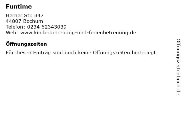 | Öffnungszeiten Funtime in Bochum anzeigen | |