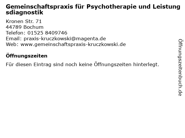 | Gemeinschaftspraxis für Psychotherapie und Leistungsdiagnostik anrufen | |