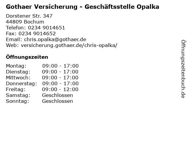 4 Gothaer Versicherung - Generalagentur Gregor Frohn (Entfernung: 7,08 km) Am Stadtgarten 1, 45879 Gelsenkirchen 5 Gothaer Versicherung - Bezirksdirektion Peter Spliethoff (Entfernung: 7,68 km) Hattinger Str. 683, 44879 Bochum 6 |