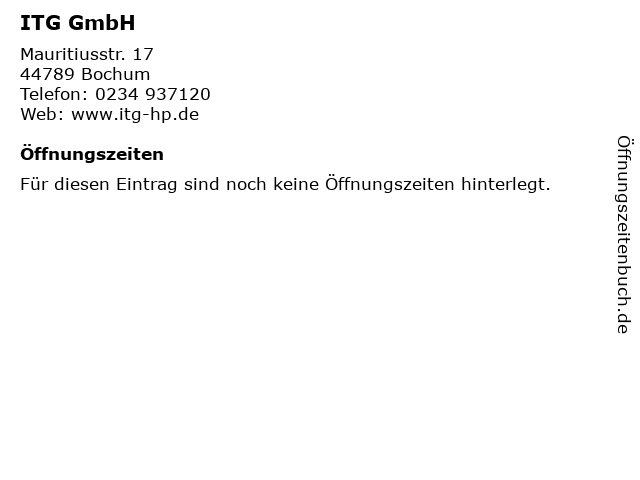 | Öffnungszeiten ITG GmbH in Bochum anzeigen | |