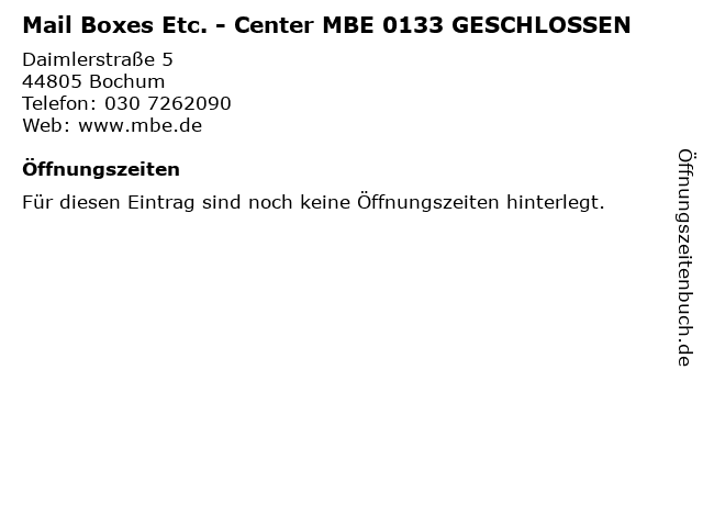 | Mail Boxes Etc. - Center MBE 0133 GESCHLOSSEN anrufen | |