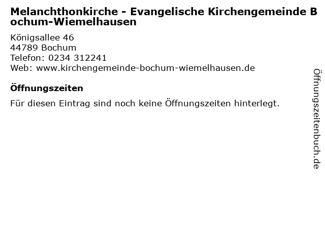 | Melanchthonkirche - Evangelische Kirchengemeinde Bochum-Wiemelhausen anrufen | |