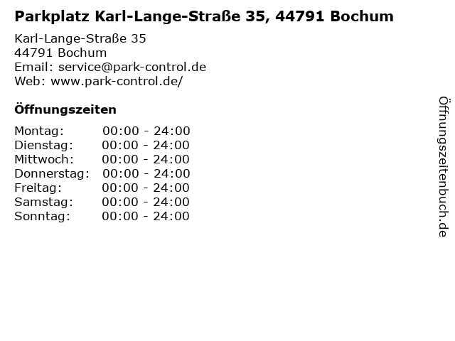 | Öffnungszeiten Parkplatz Karl-Lange-Straße 35, 44791 Bochum in Bochum anzeigen | |