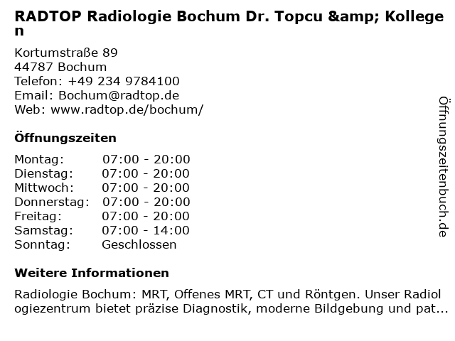 Branchen & Suchbegriffe zu RADTOP Radiologie Bochum Dr. Topcu & Kollegen:dr., kollegen, radiologie, radtop, topcu |