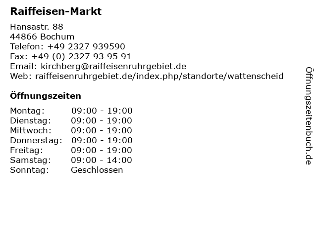 | Öffnungszeiten Raiffeisen-Markt in Bochum anzeigen | |