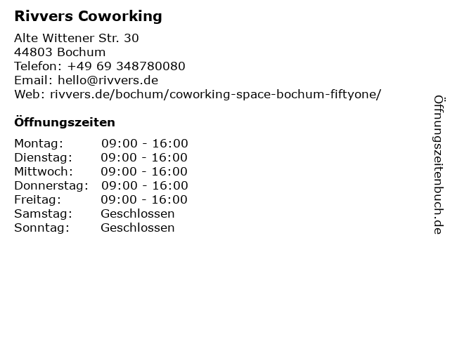 Öffnungszeiten Rivvers Coworking in Bochum anzeigen